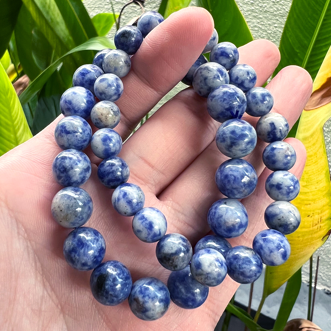 Blue dot jasper Grade : Standard grade Bead size : 8mm, 10mm Wrist Size : 16cm π± contact customer service for custom wrist size. π Healing benefits: π©Ή Brings calmness. π©Ή Promotes courage. π©Ή Stabilises the aura. π©Ή Builds inner strength. π§ Connects you to spiritual world. It stimulates the throat chakra, balances yin-yang energy, and stabilises the aura. This stone sustains energy during a fast, heals degenerative diseases, and balances mineral deficiency. __________________________ πΈ Product colour may be slightly vary due to photographic lighting and screen display settings. π―% NATURAL CRYSTAL/ GEMSTONE: Please know that we will hand pick the best most beautiful pieces for you. No crystal or gemstone is perfect, it may have some small flaws/ cracks/ inclusions/ uneven bead size etc. Please do consider carefully before place order. β No Refund β No Return β No Exchange π Thank you for your understanding.β€οΈ π’ DISCLAIMER: Crystal healing and other types of energy work are not to be considered as a substitute for traditional medical treatment. If you suffer from a serious health issue or concern you should consult your doctor.