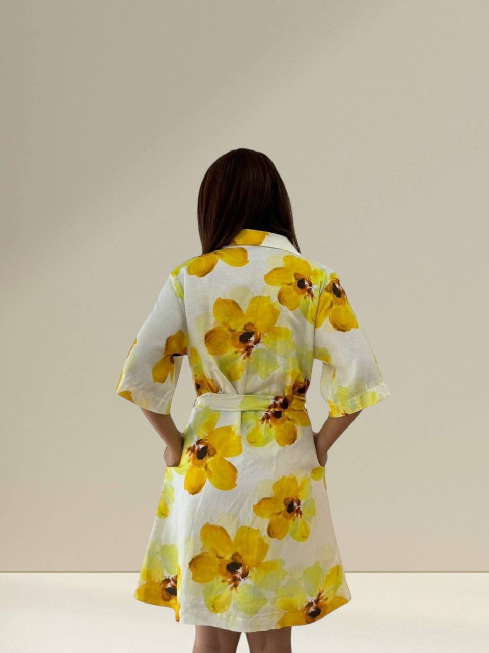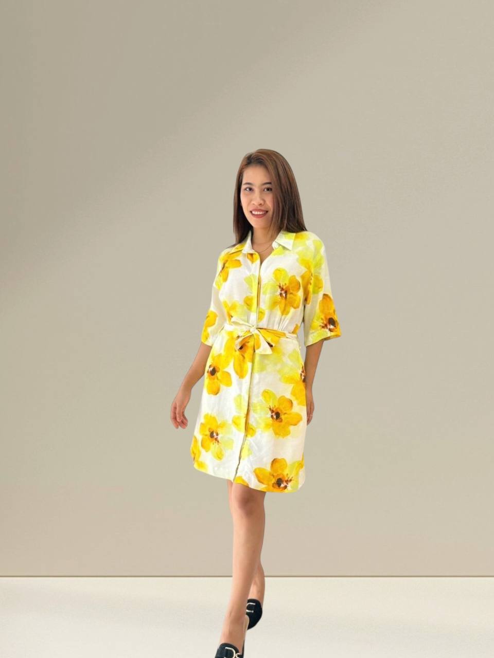 Aurora Shirt Dress features a refreshing yellow floral print that brings a bright and cheerful look. Designed with a classic collared neckline, button-down front, and relaxed short sleeves, this dress offers effortless elegance for everyday wear. The matching waist tie accentuates the silhouette while ensuring a comfortable fit. Perfect for casual outings, brunch dates, or a sunny day event, this dress blends femininity and comfort beautifully.