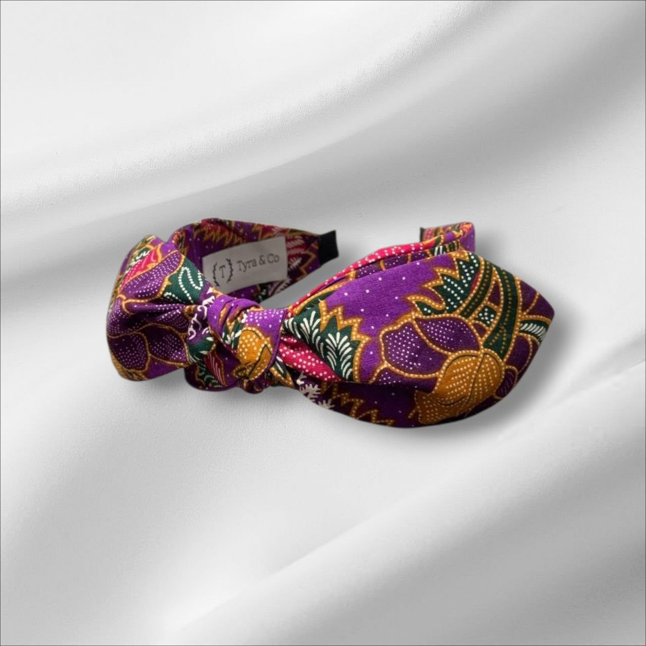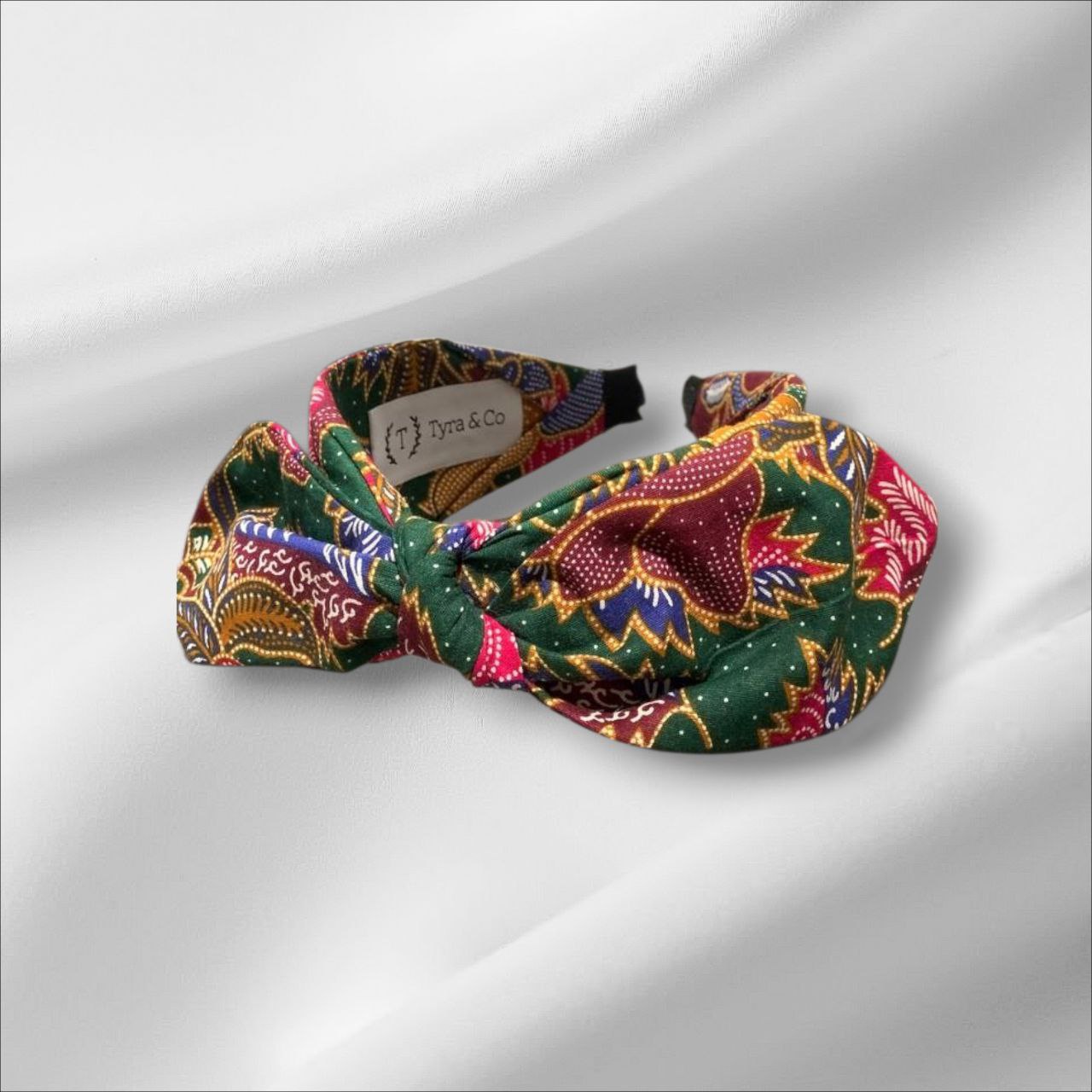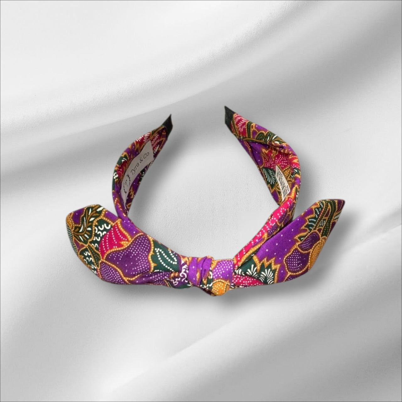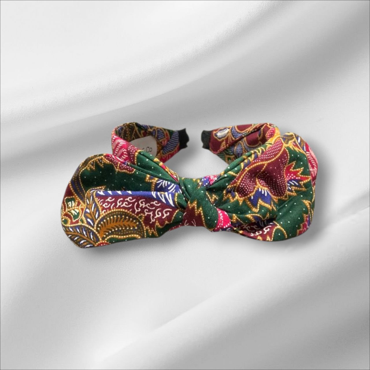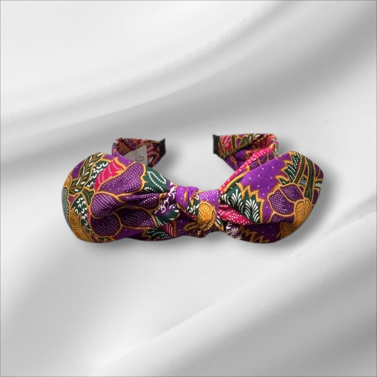 Batik Headband elevate your look with this handcrafted knotted batik headband, featuring vibrant traditional patterns in rich, eye-catching tones. Designed with a structured yet comfortable fit, it adds a stylish statement while keeping your hair neatly in place. Perfect for both casual days and dressier occasions, this headband effortlessly blends modern fashion with timeless batik artistry. IMPORTANT NOTE: The actual product may vary slightly from the images shown due to studio lighting and individual screen color settings.