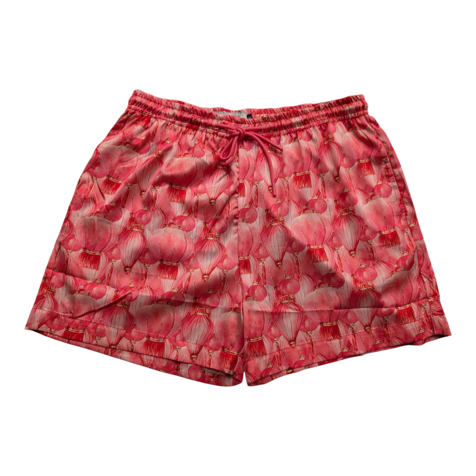 Lantern Hawaiian Shorts Illuminate your style with our Lantern Hawaiian Shorts — where festive charm meets luxurious comfort. Crafted from ultra-smooth fabric, these shorts offer exceptional comfort with a glossy, stylish finish that feels delightful against your skin. Featuring a vibrant all-over print of traditional lanterns in shades of pink and red, these shorts bring a touch of celebratory warmth and cultural flair to your everyday wear. The cheerful design and bright colors create a visually captivating and unique look. Material: Soft, and breathable fabric Design: All-over print of pink and red lanterns Fit: Relaxed fit with an elastic waistband and adjustable drawstring for ultimate comfort Occasion: Perfect for adding a touch of festive charm to casual outings, relaxed days, or celebrating special occasions Feel: Lightweight, silky, and enchantingly stylish Whether you're celebrating a special event or simply want to add a touch of cheerful elegance to your look, these shorts offer the perfect blend of comfort and captivating visual appeal. IMPORTANT NOTE: The item may appear slightly different from the pictures shown due to studio lighting conditions and variations in device screen color calibration.
