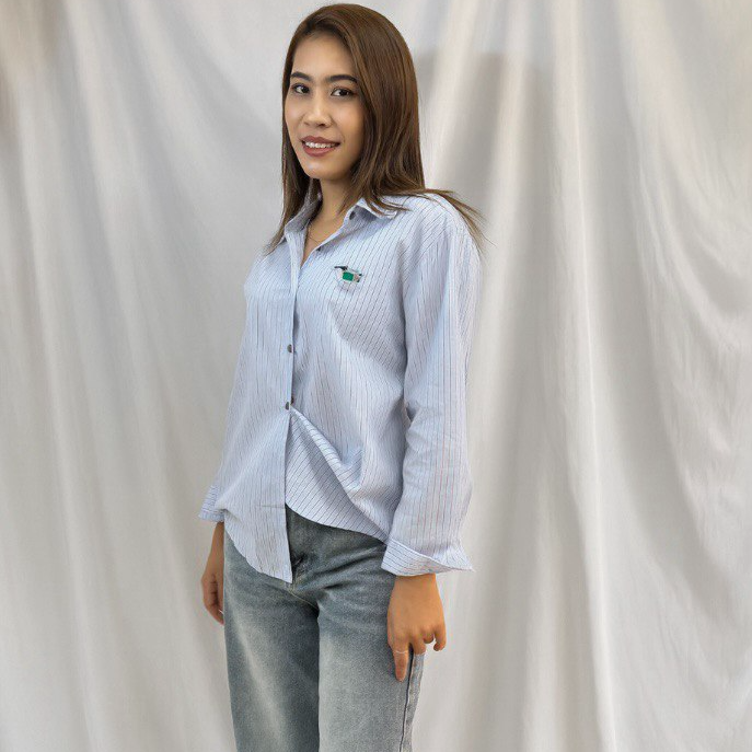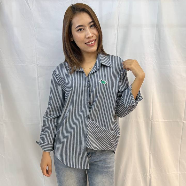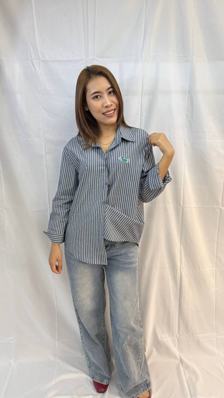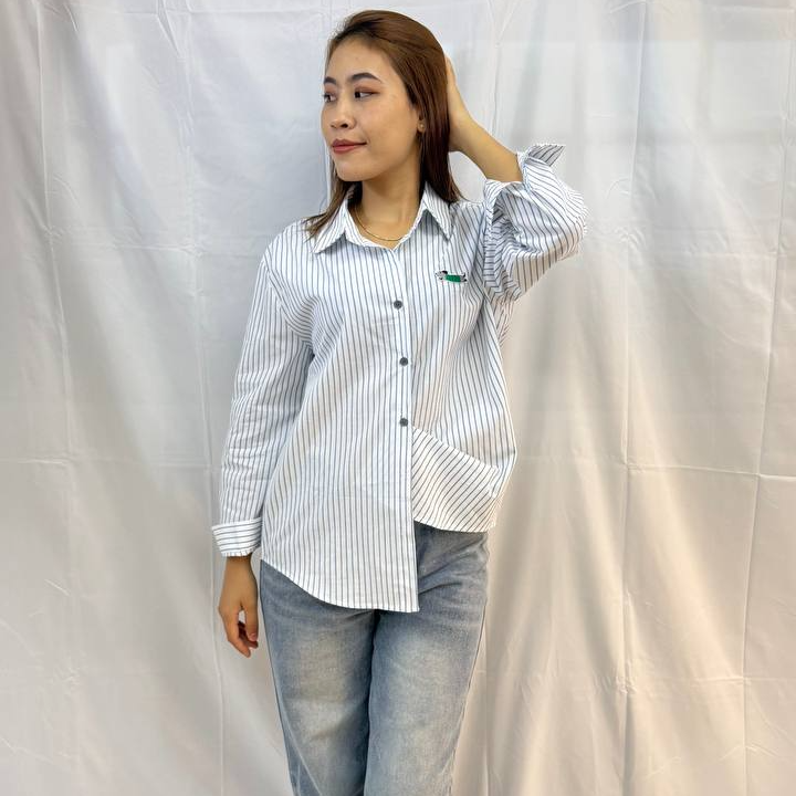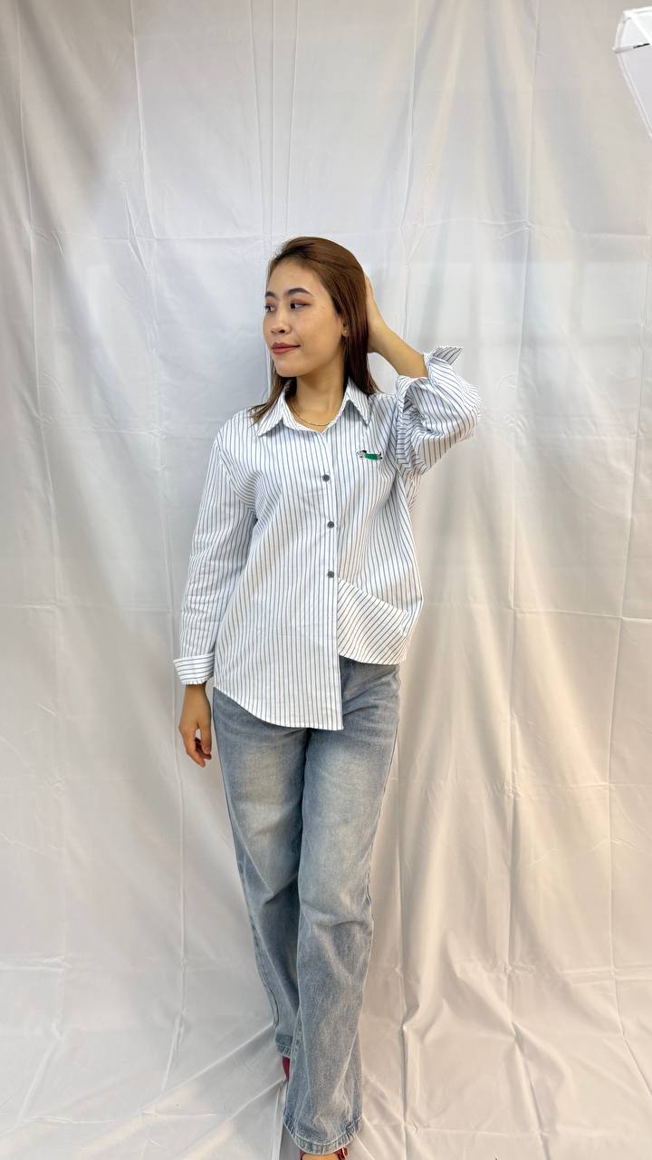 The Classic Stripe Button-Up brings a timeless look to your everyday style. Designed with crisp vertical stripes, this long-sleeve shirt offers a clean, structured appearance while still keeping things comfortable and relaxed. Its lightweight fabric and easy button-down front make it perfect for both casual days out and smart, effortless styling. Pair it with jeans, trousers, or skirts for a versatile look that never goes out of trend. Measurements: Bust: 108cm Length: 67cm