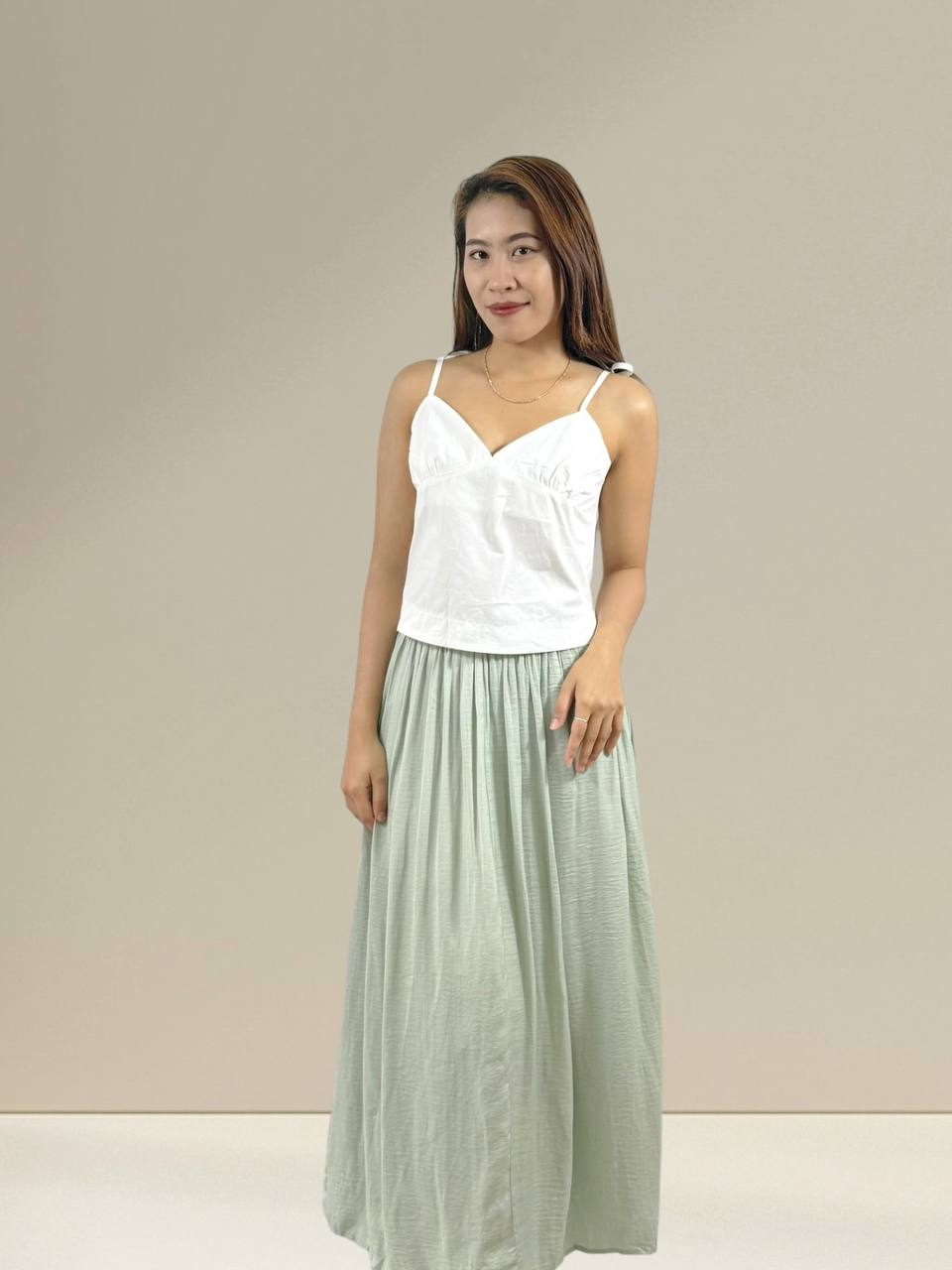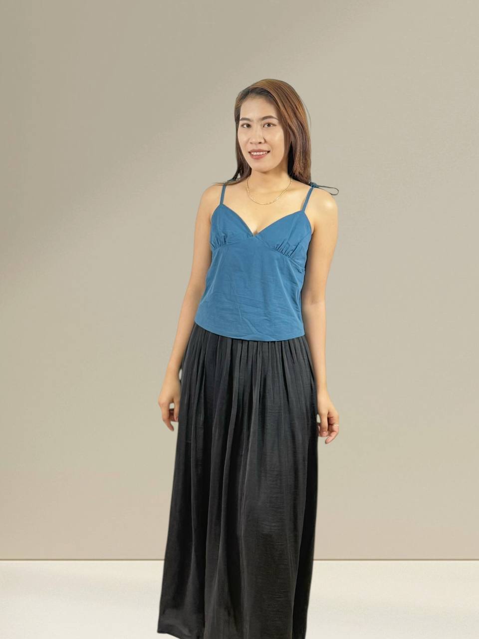 A flowy pleated skirt made from lightweight chiffon for an elegant and airy feel. Designed with soft pleats that create beautiful movement with every step. Comfortable and easy to style, perfect for both casual outings and semi-formal occasions. Pair effortlessly with tops or blouses for a feminine, graceful look.