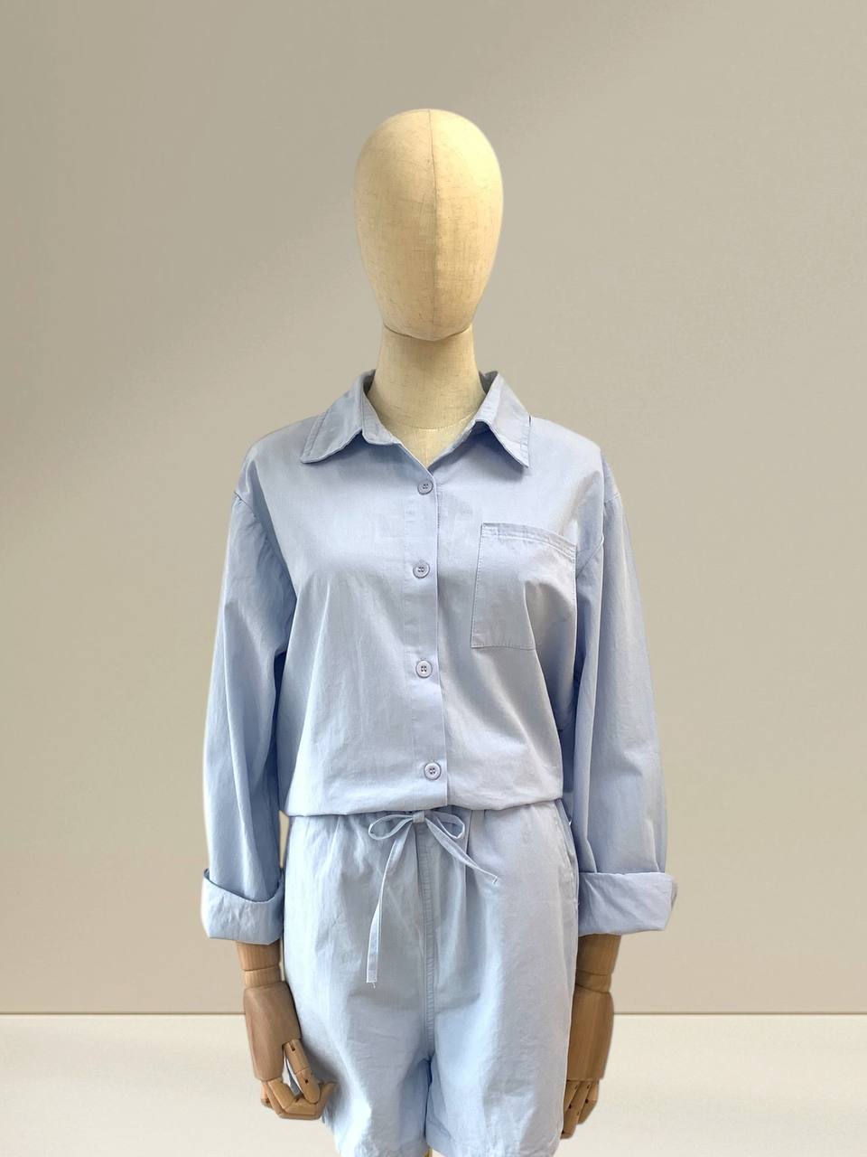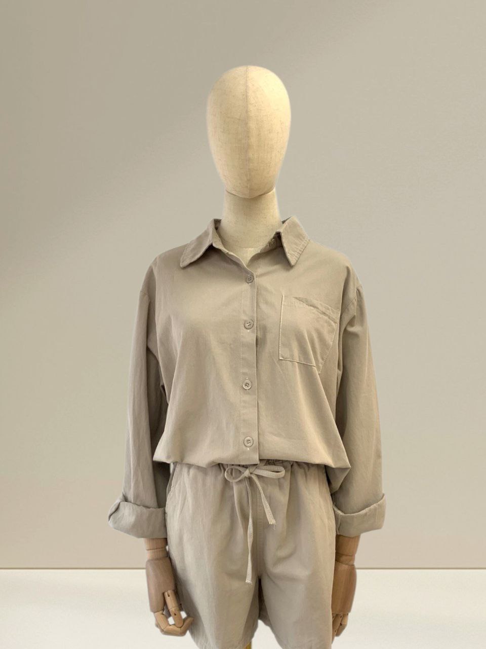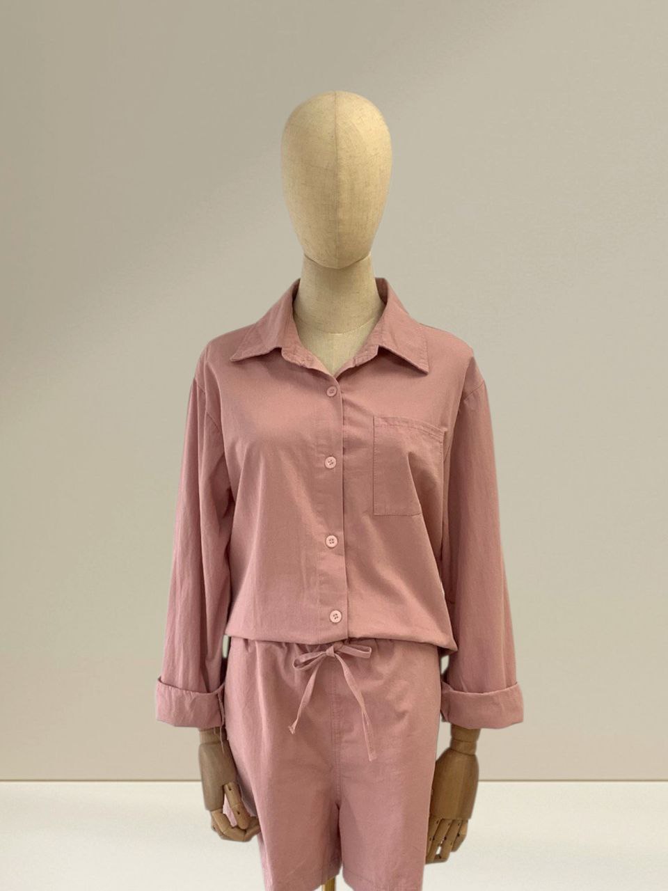 Mila Casual Set is designed for effortless comfort and everyday wear. Made from a lightweight and breathable fabric, this set features a collared button-down top paired with elastic-waist bottoms with an adjustable drawstring for a relaxed and comfortable fit. The easy silhouette gives a laid-back yet polished look, perfect for lounging, casual outings, or travel days. Available in three soft shades which is Beige, Blue and Pink, the Mila Casual Set is easy to style and suitable for any occasion. A go-to piece for those who value comfort with a touch of simplicity and style. Sizes in inches Measurements Top: Bust: 23 inches Length: 31 inches Measurements Pants: Waist: 24 inches Length: 15 inches IMPORTANT NOTE: The actual product may vary slightly from the images shown due to studio lighting and individual screen color settings.