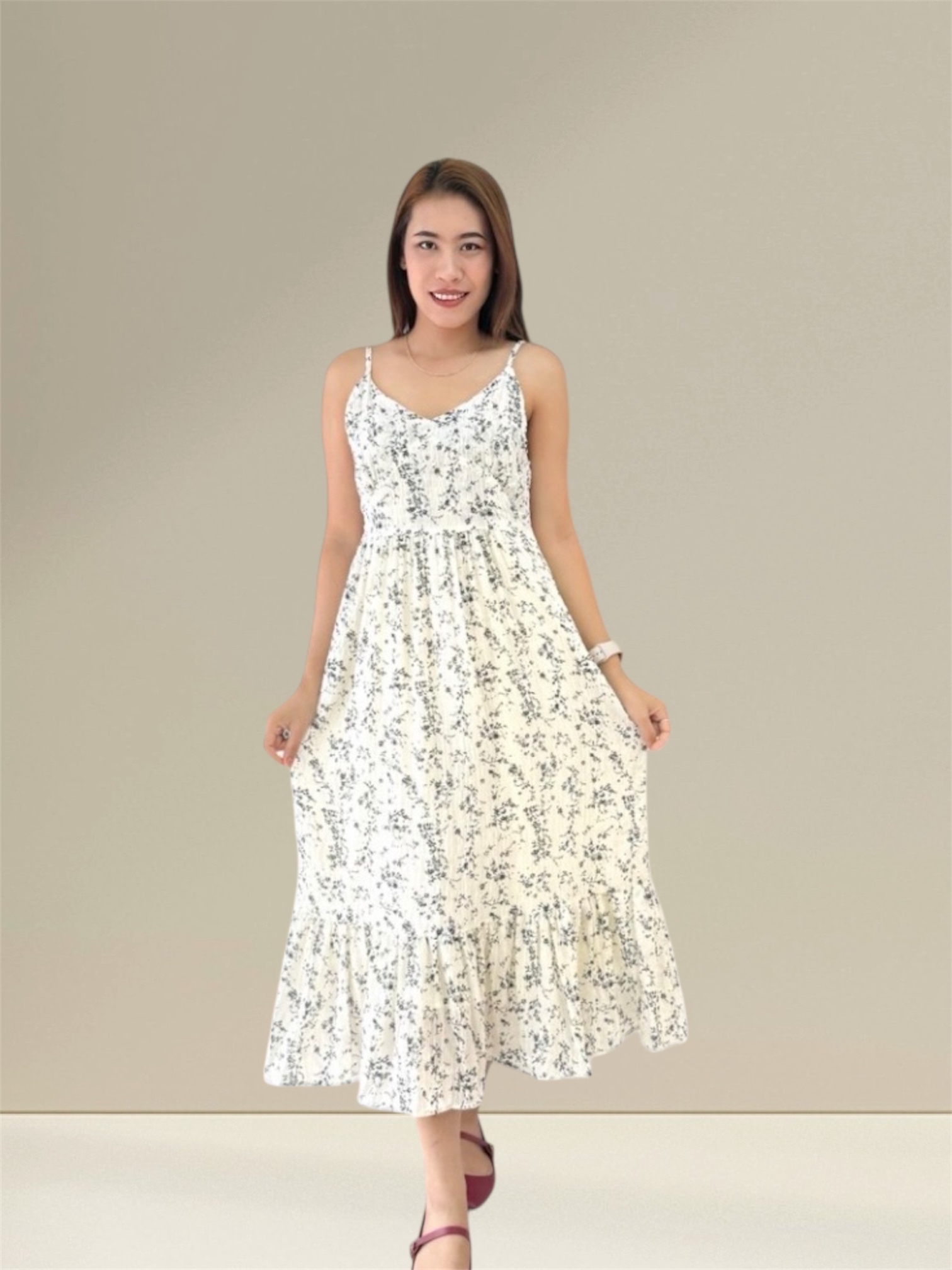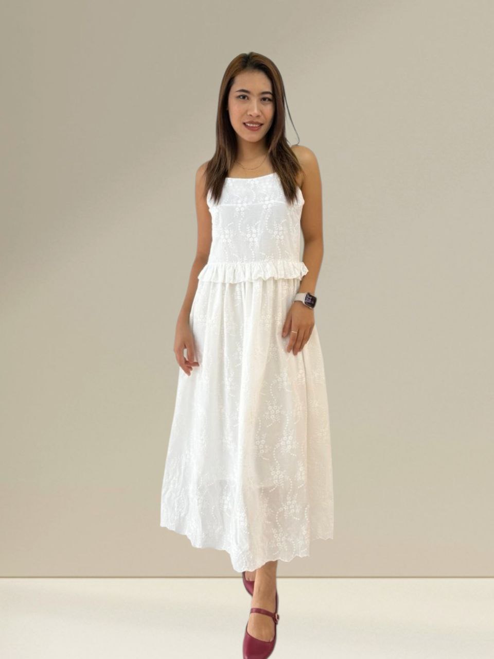 FS1060 - Flowy White Puff-Sleeve Maxi Dress