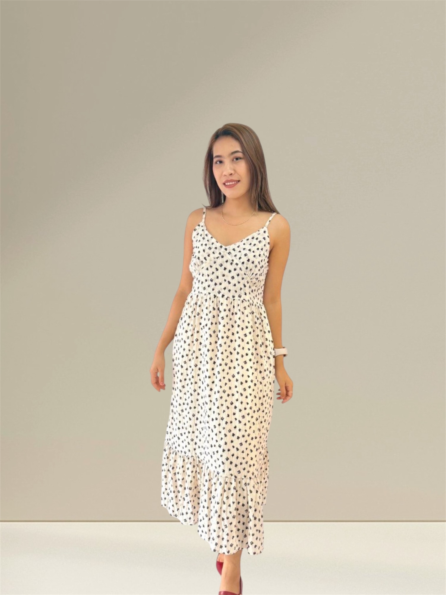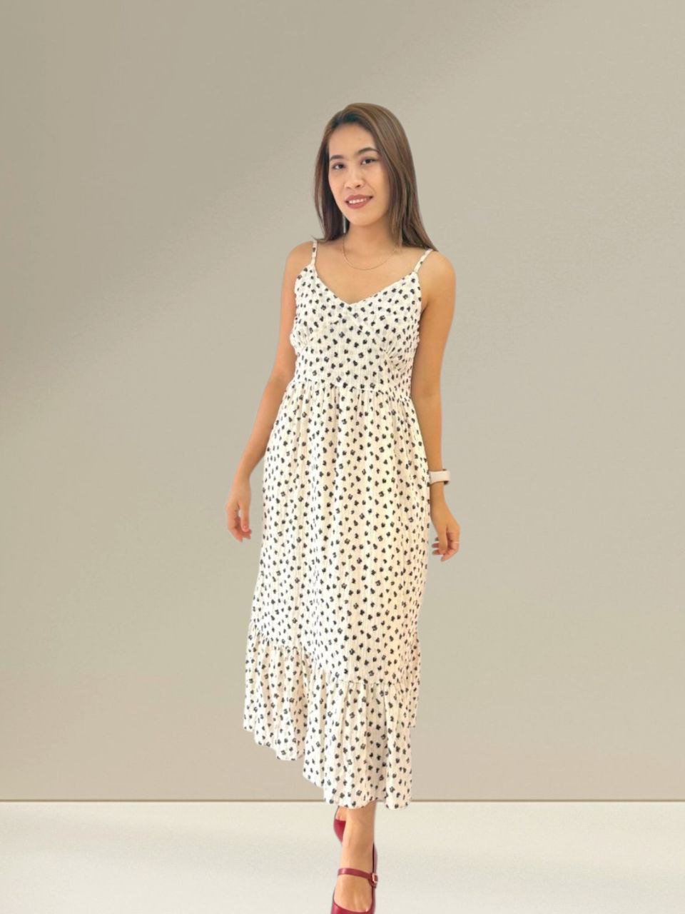 Minimal Bloom Dress blends subtle florals with a clean, refined silhouette creating an effortlessly elegant piece that elevates any moment with understated charm. Measurements: Bust: 90cm Waist: 130cm Hip: 136cm Length: 125cm