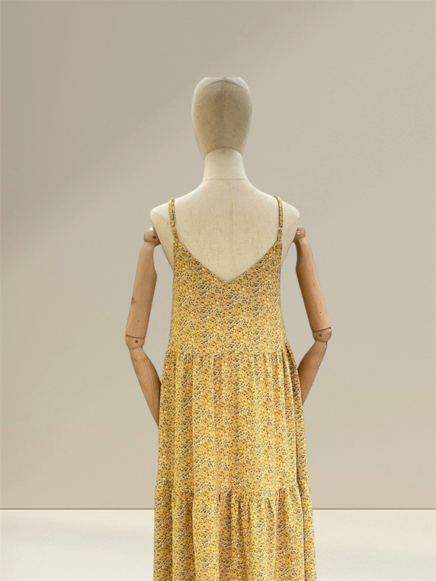 Petite Floral Layered Dress embodies quiet luxury with its delicate floral motif and gracefully tiered silhouette. Crafted to drape beautifully with every movement, this piece elevates your daytime ensemble and transitions seamlessly into elegant evening moments. Sophisticated, feminine, and eternally refined. Measurements: Buts: 90cm Waist: 138cm Hip: 164cm Length:125cm